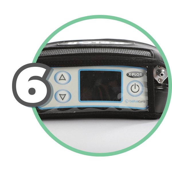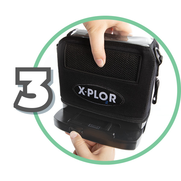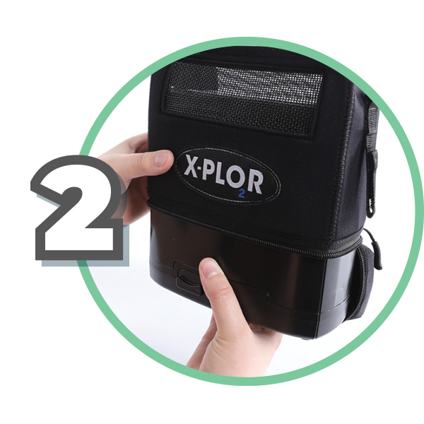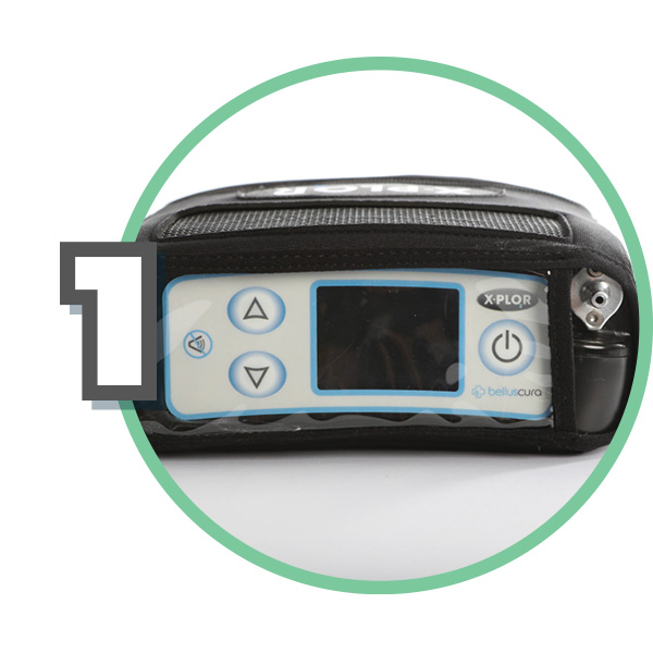 Turn on the X-PLO₂R by pressing the power button for 2 seconds. Set the flow setting to your prescribed setting and use normally.