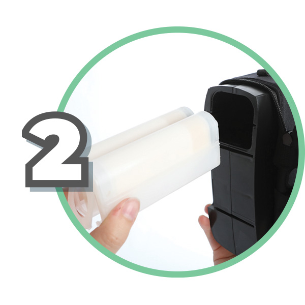 Insert new cartridge top first into the X-PLOR. Do not leave the cartridge ends exposed; the cartridge should be inserted into the X-PLOR as soon as the used cartridge is removed.