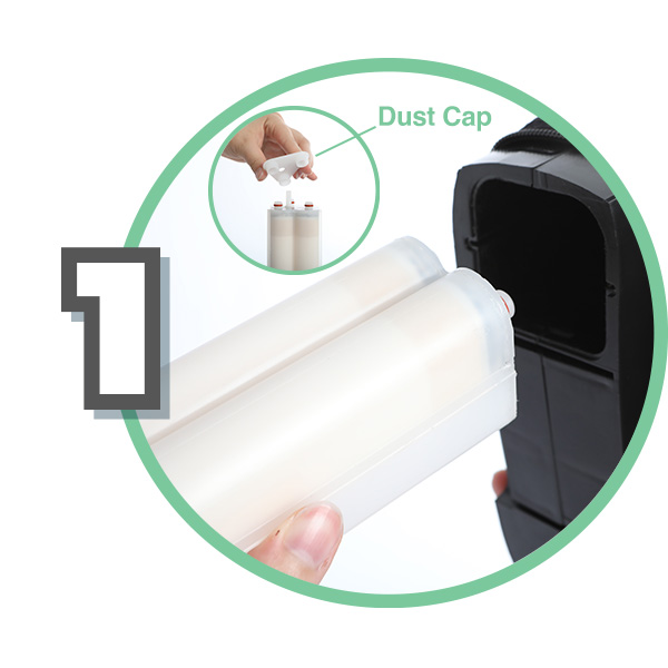 Remove cartridge from mylar bag. The new cartridge has a dust cap on top. Remove the dust cap. Make sure there is no dust or debris where the dust cap was located.
